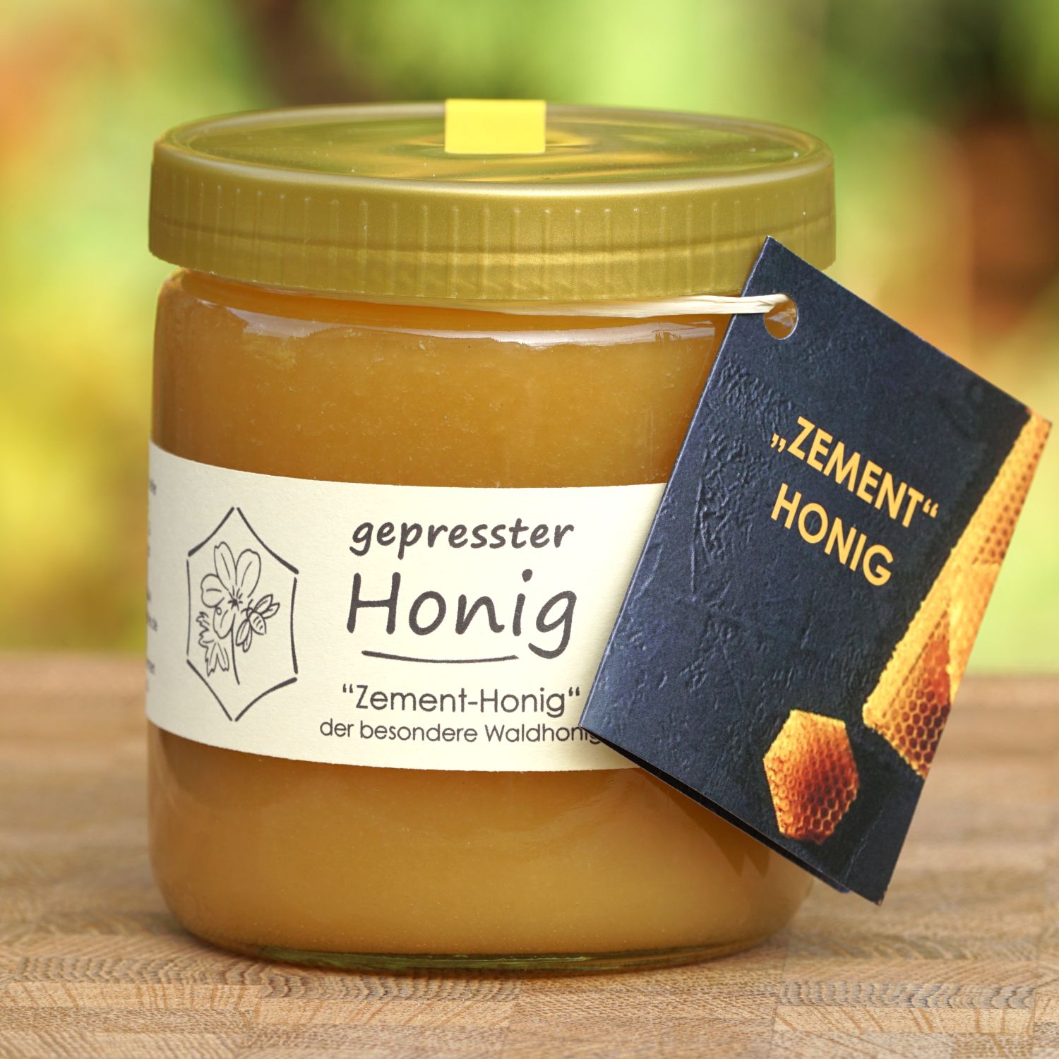 „ZEMENT-HONIG“ steht in der Imkersprache als Synonym für Honig, welcher in der Wabe bereits fest ist. Findet der Imker im Sommer solche Waben im Bienenvolk, fühlt es sich sprichwörtlich an, als sei der Honig in der Wabe zementiert.